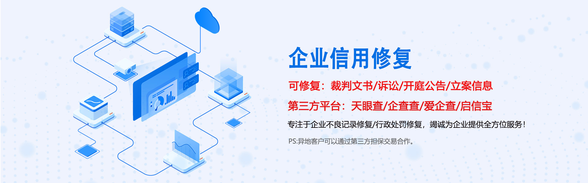歡迎光臨佰修網(wǎng)!我們專(zhuān)業(yè)處理企業(yè)信用修復(fù)、企業(yè)不良記錄修復(fù)、行政處罰、環(huán)保處罰、企查查/天眼查等,源頭處理,放心無(wú)憂(yōu)!